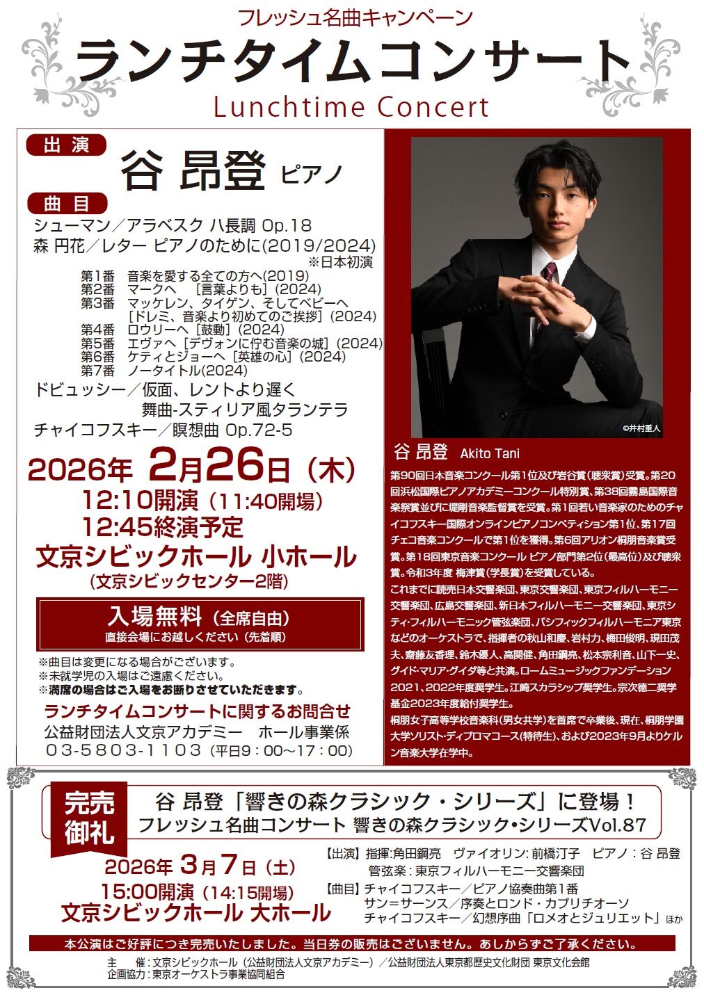 | 2026年2月26日 開演時間:12時10分 (開場時間:11時40分) 終演時間(予定):12時45分 |
